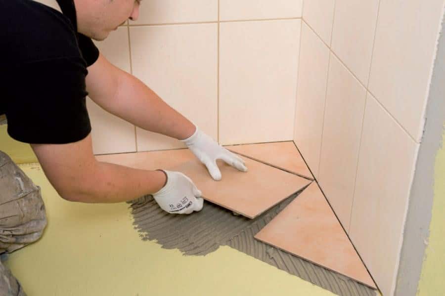 - При диагональной укладке работы начинаются с дальнего левого угла туалета.