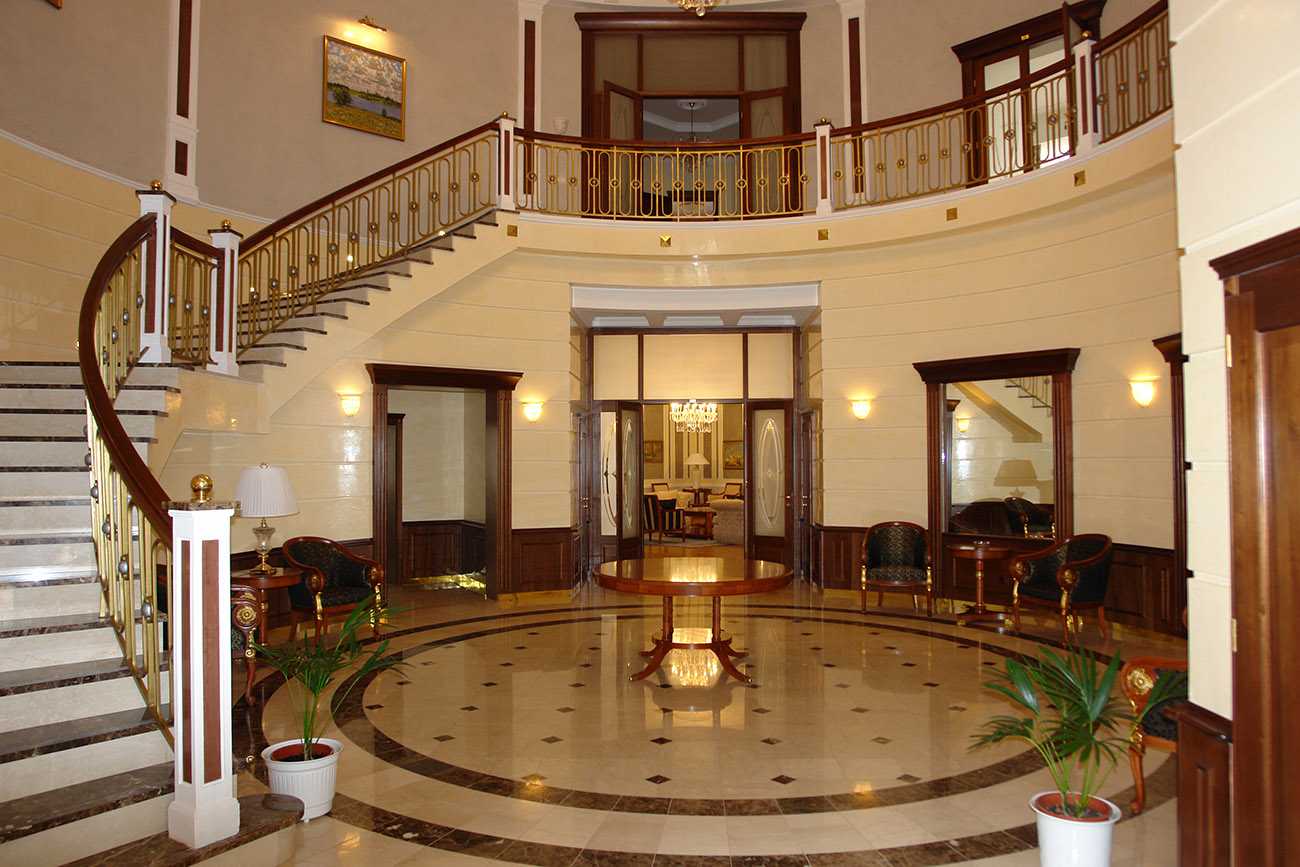Для создания оригинального дизайна нужно использовать дорогое дерево, мрамор и натуральные ткани. Все это должно создавать торжественную атмосферу, способную перенести жильцов и гостей в далекие королевские времена. В интерьере коттеджа с классическим стилем должна гармонично сочетаться роскошная нарядность, богатство убранства и максимум комфорта.