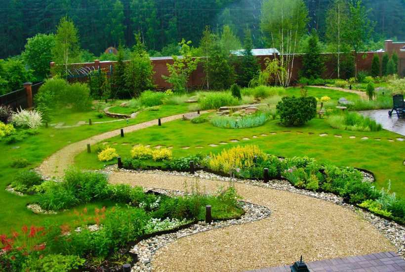 Садовые дорожки являются одной из важных частей правильного дизайна. Они не только обеспечивают проход в нужное место, но и становятся границами зон или прелестным декоративным элементом. В качестве материалов применяют камень, кирпич, бетон, пластик, траву, щебень.