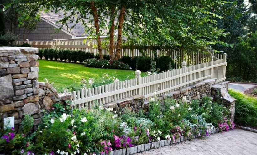 Заборы и внутренние ограждения изящно подчеркнут выбранный стиль, если их правильно подобрать. Очень часто их украшают с помощью бордюрных цветов, навесных цветочных горшков, лиан.