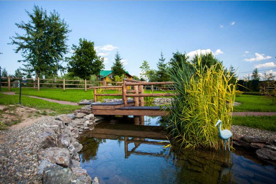 Тот же пруд, но более вытянутой формы и с очаровательным мостом, который может быть любимым местом для прогулок
