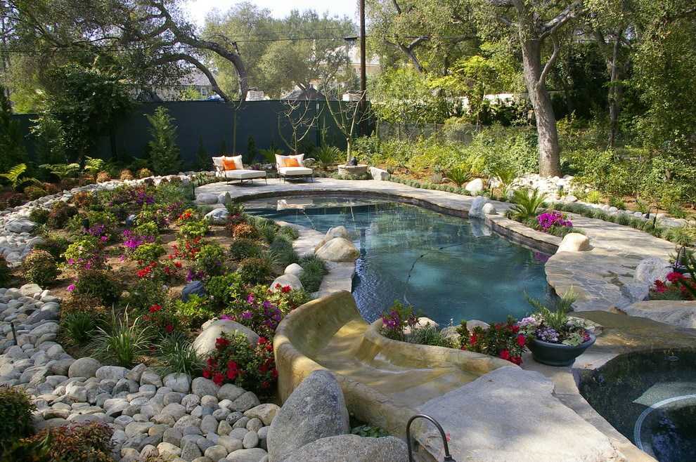 Особенно прекрасны подобные сооружения с неровным или наклонным рельефом, в обрамлении зеленых растений или рокария.