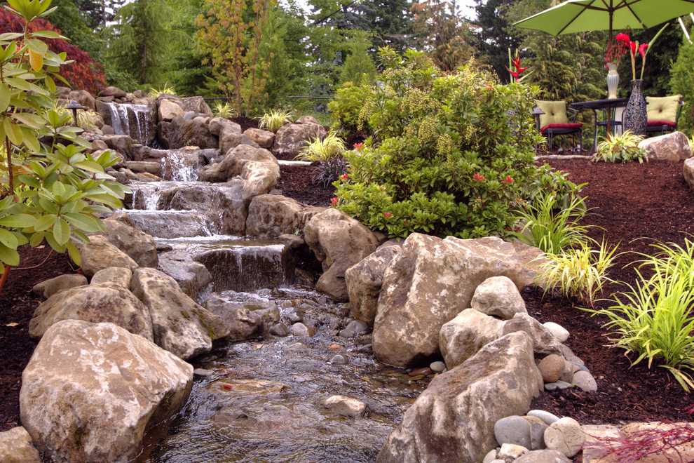 Полноценный элемент декора, способный обозначить и украсить ту или иную зону. Даже на маленькой территории смотрится очень гармонично, наполняя пространство умиротворением и безупречной эстетикой водопада.