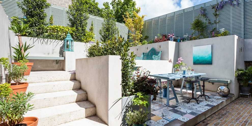 Средиземноморский стиль. Здесь основным элементом сада является патио с коваными элементами, плетеной мебелью, простым текстилем, возможно, с милыми горшочками, кашпо или глиняной посудой. Обязательно присутствует беседка, обвитая плющом. Уместны здесь также всевозможные детали в античном стиле: статуи, колонны, фонтаны.