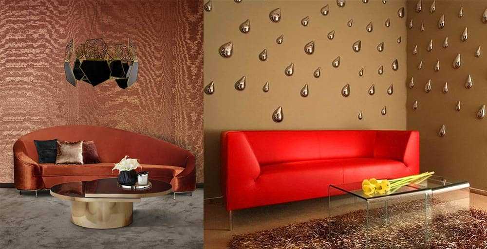 Металлический бум будет сопровождать дизайнеров интерьера в 2020 почти во всех интерьерах. В ванной комнате его можно найти на плитке, на кухне, а в гостиной, кабинете или спальне — на обоях. Модные обои для гостиной или для спальни 2020 — это модели, имитирующие металлические поверхности, например, листа или пластины из меди, латуни или золота. В предстоящем сезоне наряду с металлами теплого цвета, безусловно, будет олово. Все более популярным в 2020 году станет использование обоев с растительными, многократно выпуклыми узорами, обогащенными элементами, окрашенными глянцевой, золотой или латунной краской.