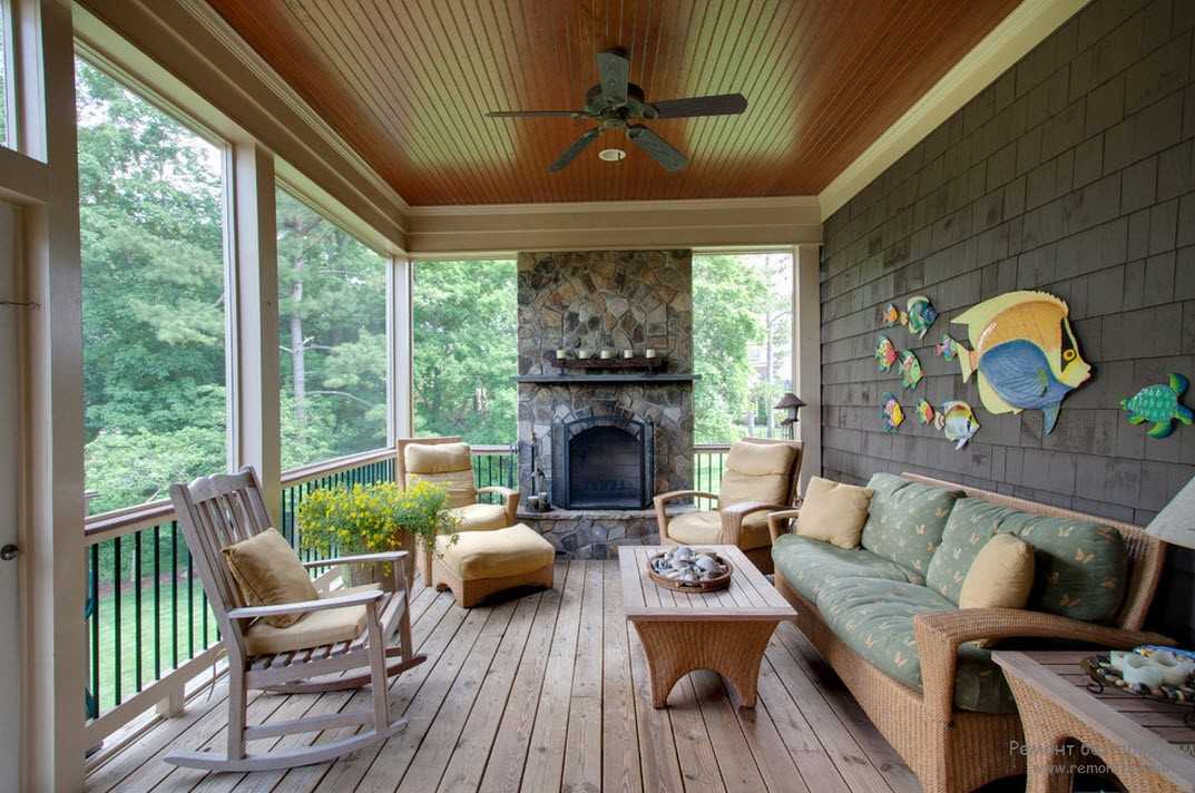 Существует несколько способов оформления веранды. Главным критерием в таком помещении загородного дома является наличие большого количества света. Но бывают моменты, когда избыток солнечных лучей не уместен. Для этого используют элементы способные уменьшить освещённость данного помещения: