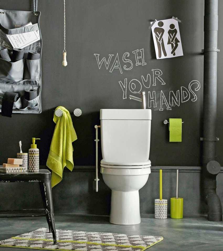 Стены туалета можно оформить надписями, сделанными собственноручно
