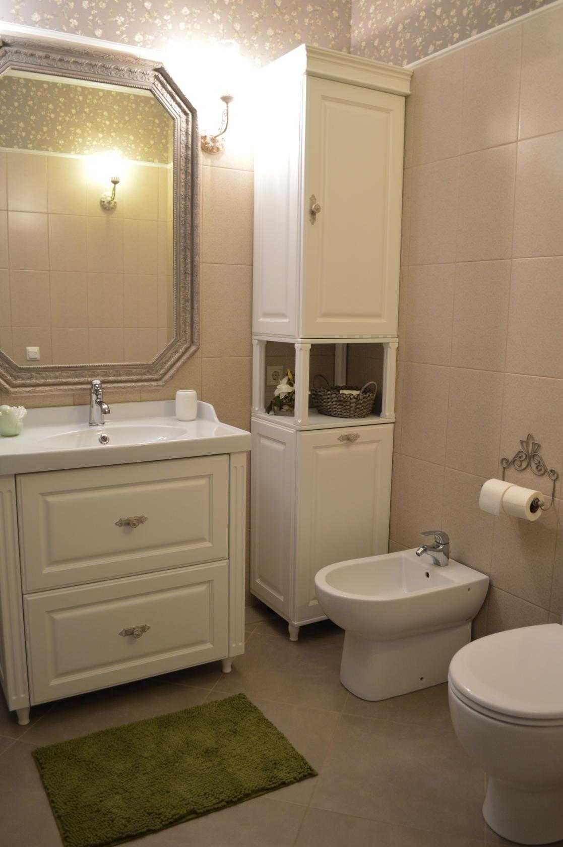 Характерная искусственно состаренная мебель в туалете в стиле прованс