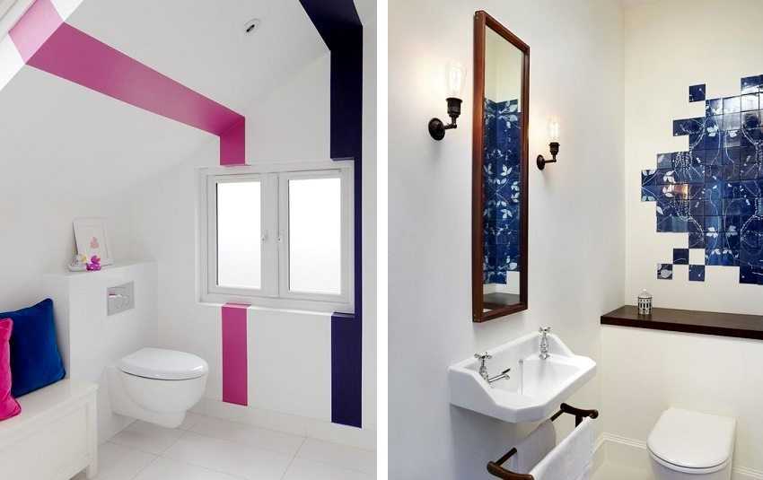 не используйте материалы одного цвета. Туалет – комната сугубо утилитарная, но делать из нее стерильное помещение без выдающихся черт тоже не стоит. Если преобладающий цвет стен и пола в туалете – белый, то стоит освежить его оригинальным узором из плитки или декоративными элементами. В противном случае будет создаваться ощущение стерильной медицинской палаты, а это не то, что нужно для туалета;
