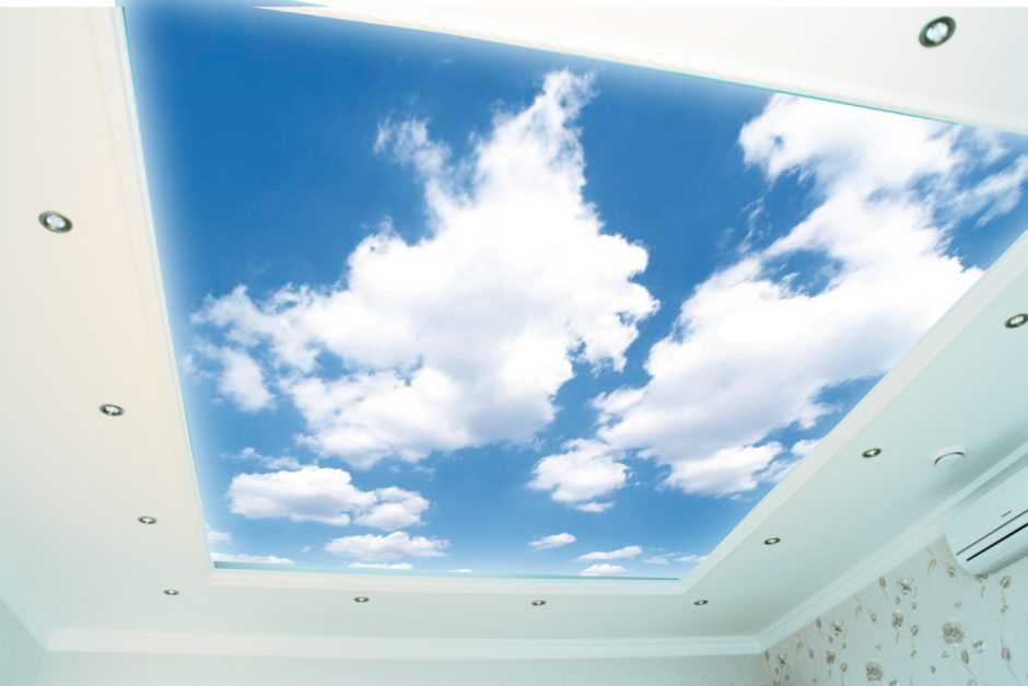 Дела с темой облаков обстоят примерно так же, как и со звездами. Здесь вы вольны выбирать приемлемый для себя вариант отделки, а само изображение поместить не так сложно. Детские натяжные потолки небо решение простое и очевидное, но и оно не является максимально эффектным среди всех предложений. Фотопечати на натяжных потолках для детской с развитием технологий и дизайнерских решений все сложнее соперничать с альтернативными способами: