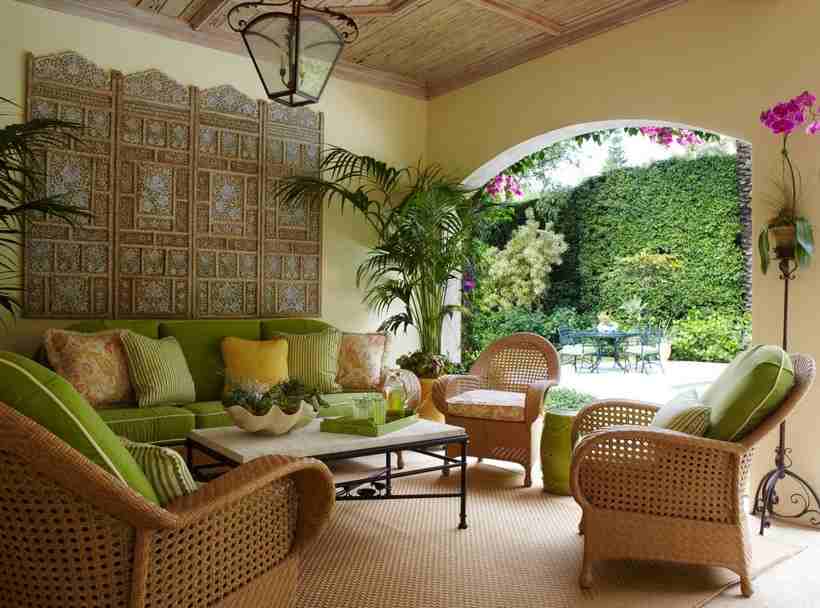 - Особенность, не присущая большинству наших домов – отсутствие видимых границ между улицей и помещением. Подбор и расстановка предметов меблировки осуществляется таким образом, чтобы ваша комната стала похожей на веранду или террасу.