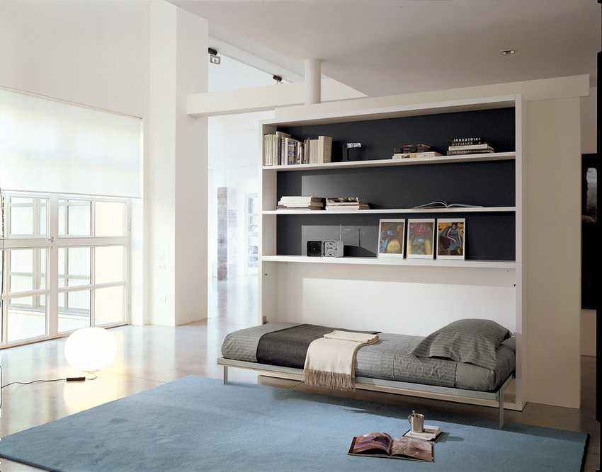 Минималистичный интерьер с удобной кроватью-трансформером
