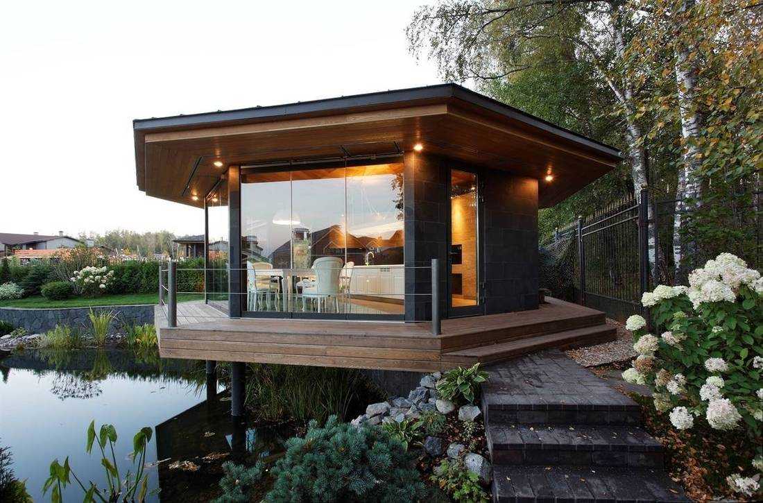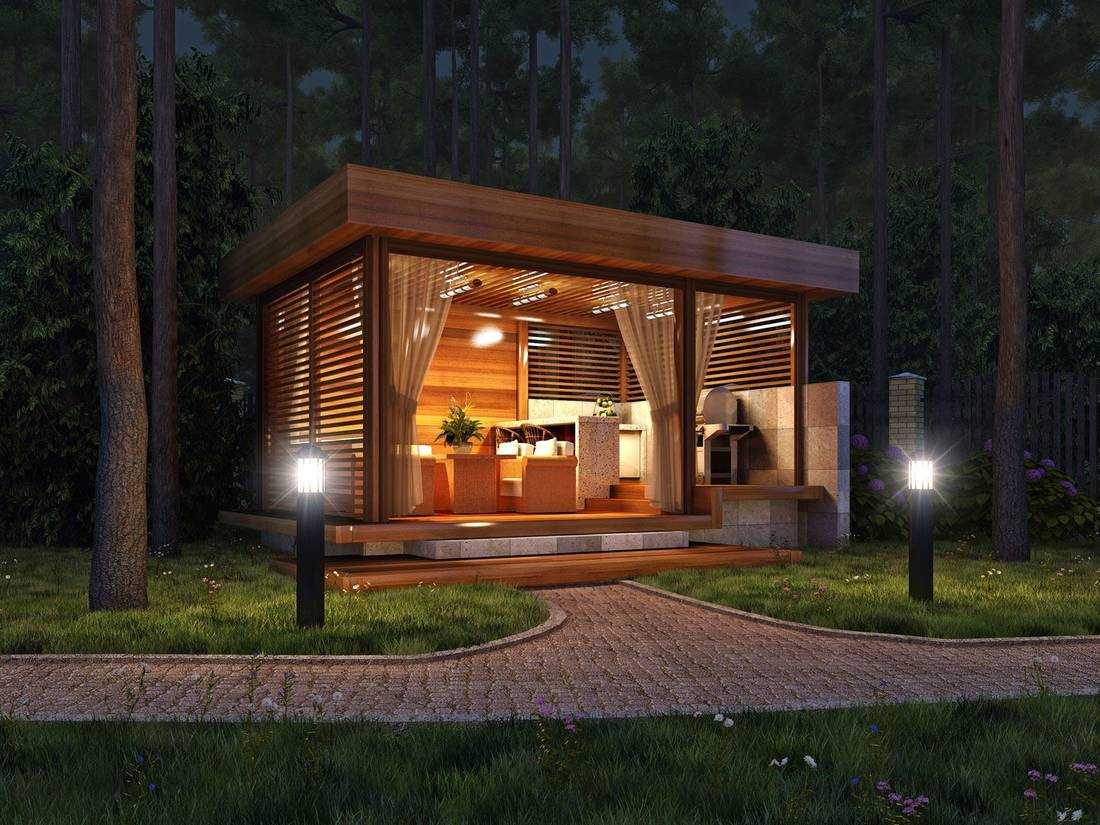 открытые конструкции отличаются простотой и практичностью. Такие постройки делаются из опор и навеса. Из такого павильона открывается прекрасный обзор окружающей природы;