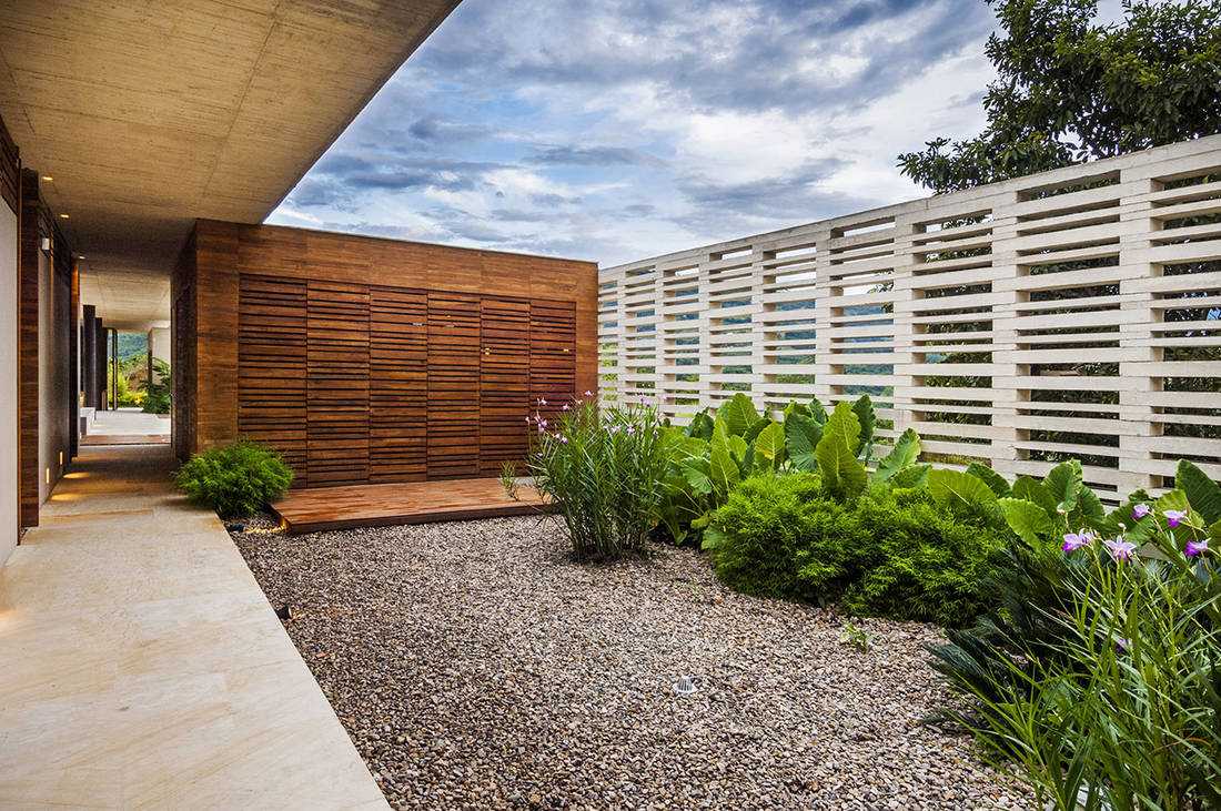 А вот вариант с тропическими лиственными растениями во дворе таунхауса.