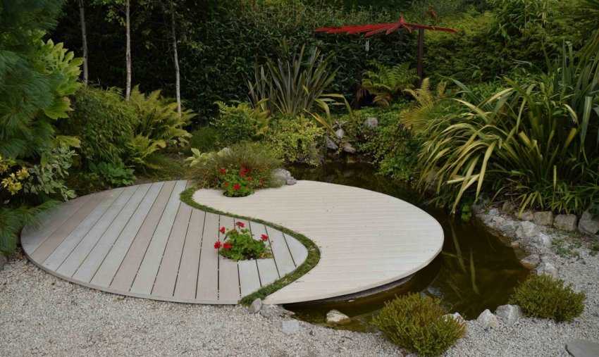 Здесь важно учитывать элементы стихий, гармонию в расположении растений и предметов. Обязательно наличие воды и камня