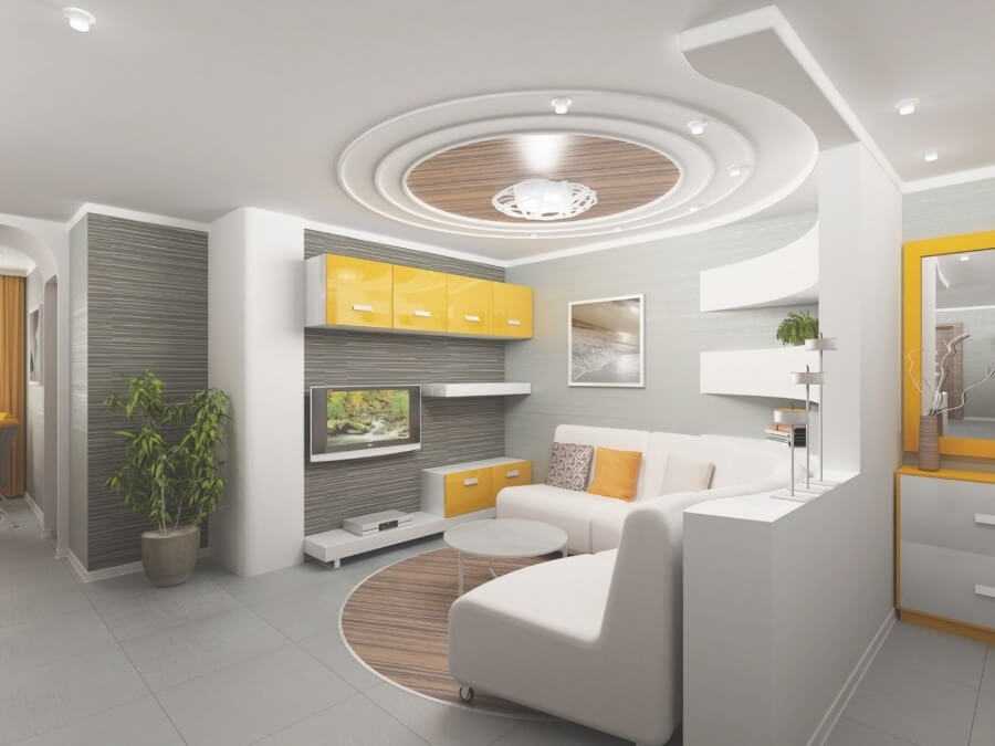 При всех преимуществах, недостатков у такого потолка почти нет. Одноярусная поверхность – универсальное решение, которое прекрасно подойдет не только для зала, но и других комнат.