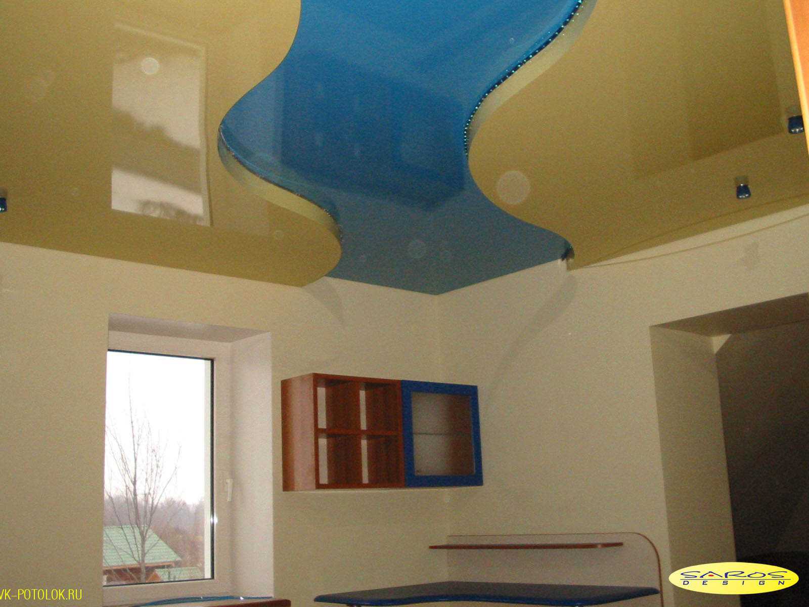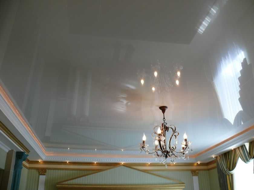 Глянцевое. Такая поверхность будет отражать свет, благодаря которому все помещение будет казаться гораздо просторней и светлее. Глянцевые потолки подходят для маленьких, тесных кухонь в малогабаритных квартирах, особенно если выбрать бежевый или молочно-белый оттенок. Для ухода за ними потребуется микро фибровая тряпка и средство для мытья стекол.