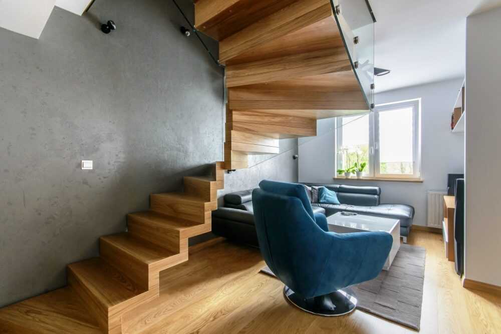 Не только высота ступеней, но и ширина не могут быть случайными. Слишком узкая лестница в доме на одну семью может реально усложнить жизнь. Она затрудняет проход двух людей, а иногда даже может помешать переместить вполне стандартную мебель. Ее ширина должна быть не менее 80 см. Однако самая оптимальная- 110 см.