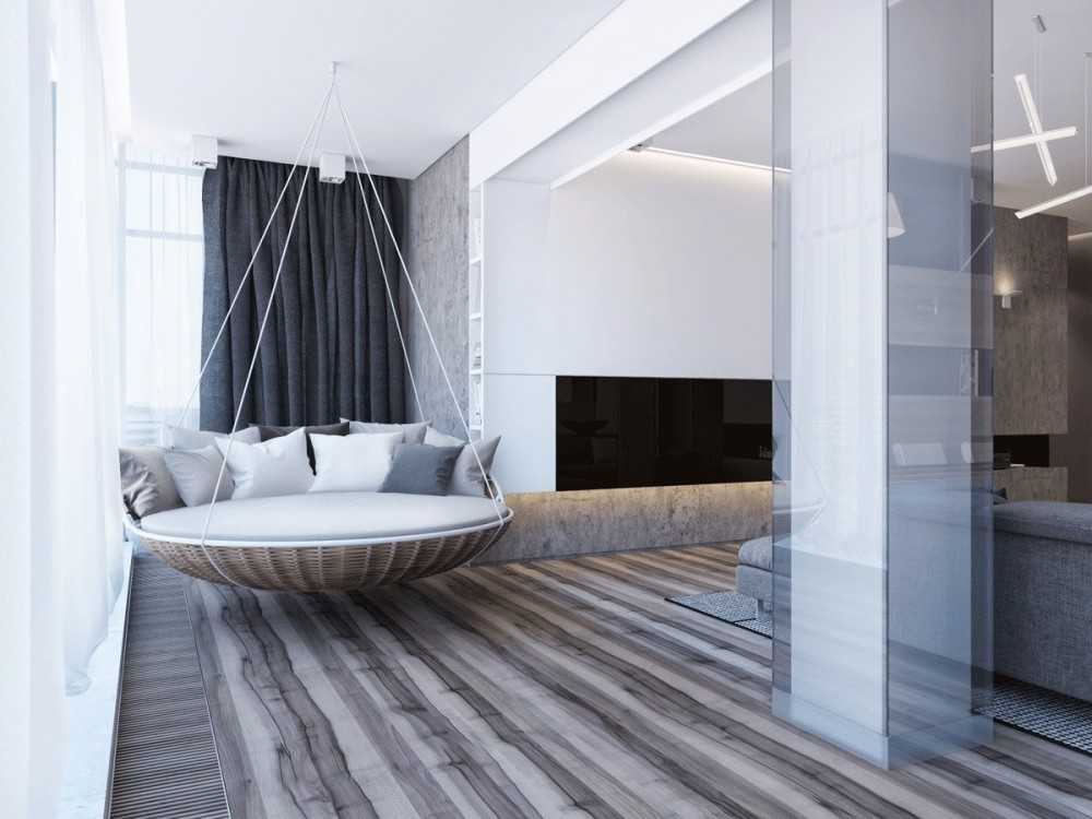 Логично, что подвесная кровать в квартире будет устанавливаться в спальне, детской комнате. Она станет свежим «глотком», новым веянием в интерьере. Такое ложе сможет украсить любую обстановку, придаст ей неординарный вид.