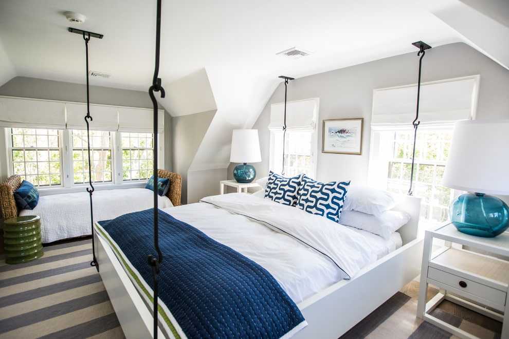 Важно: если вы будете монтировать стационарную лестницу — закрепите ее надежно и убедитесь, что у нее нет люфта. Подвесные кровати используют в дизайне интерьера или для расширения пространства в малогабаритных квартирах