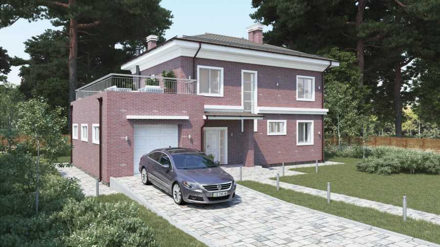 Проект 5. Фасад двухэтажного дома 9х9 м из газобетона