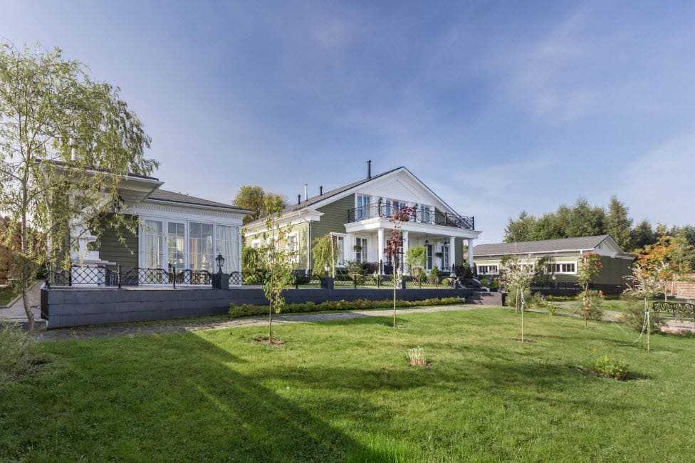Важно, чтобы стиль дома с крыльцом вписывался в ландшафтный дизайн.