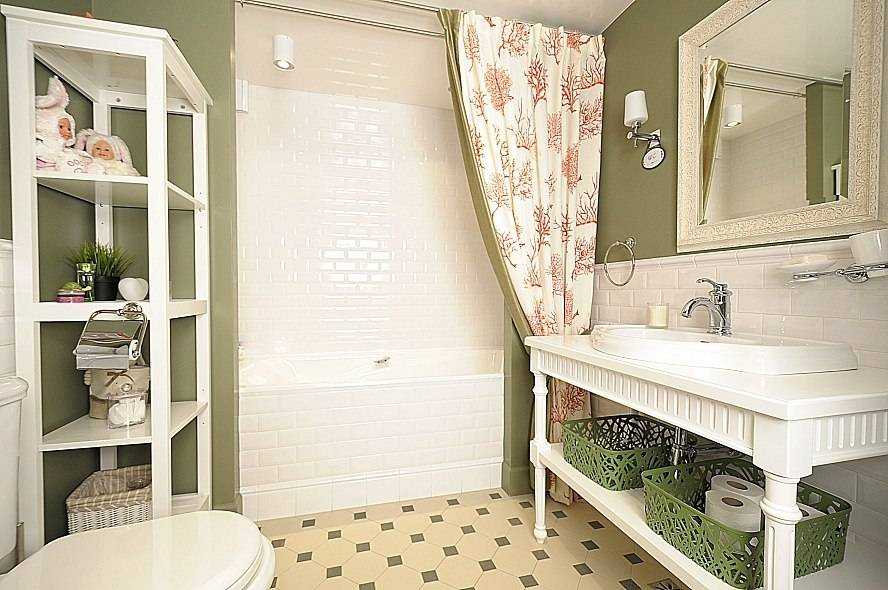 | Прованс | Деревенский стиль подойдет как большим ванным комнатам, так и помещениям средних размеров. Такое решение позволит максимально сохранить свет и простор. |