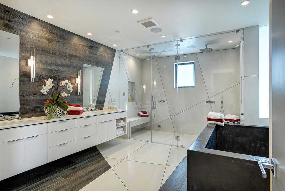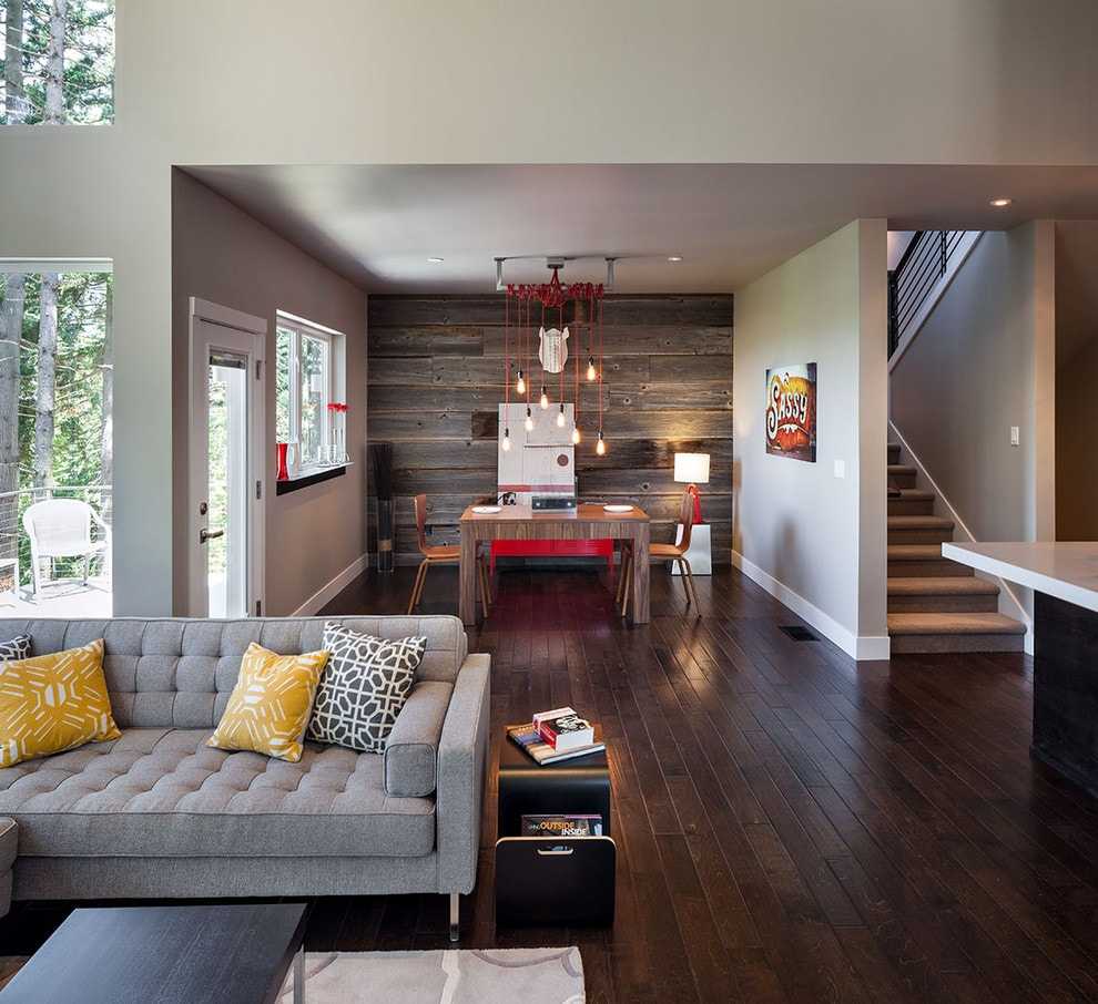 Помимо комбинации из нескольких покрытий, современный вид имеет сочетание разных цветов – темные и светлые. В отдельных интерьерах, дизайнеры сочетают до 3-4 цветов.