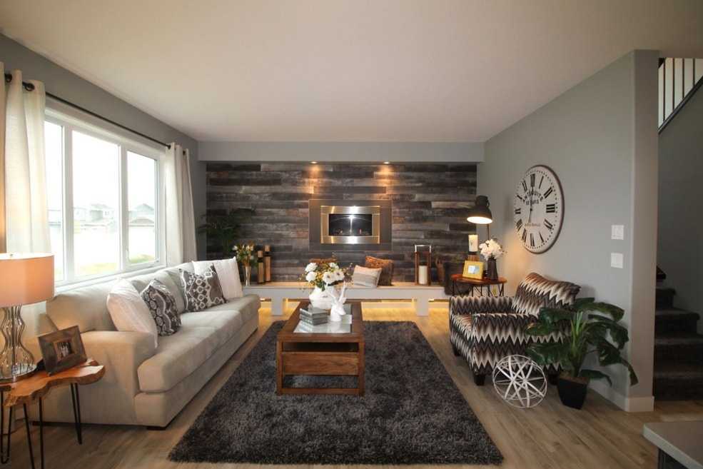 Серый ламинат в интерьере квартиры в сочетании с обоями или покрашенными стенами всегда смотрится органично. Также допускаются другие варианты отделки. Например, в гостиной можно сделать участки с имитацией кирпичной стены.