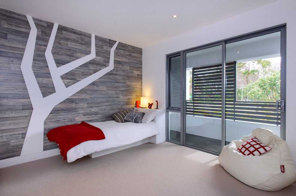 Оригинально подобная отделка будет смотреться и в абсолютно белом, монохромном интерьере.