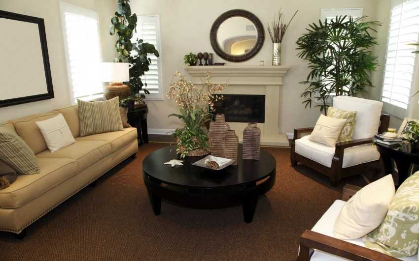 Декор гостиной своими руками, занятие довольно приятное и увлекательное. Элементами декора могут быть не только искусственные материалы, но и комнатные растения. Живая природа в доме придаст естественной теплоты.