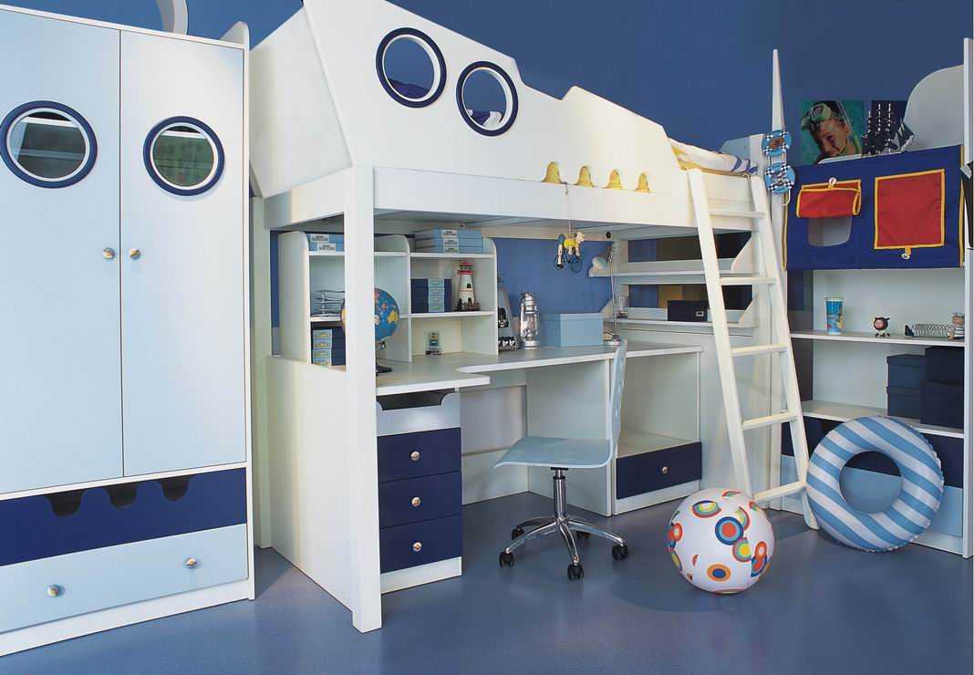 Детская мебель для мальчика — кровать, выполненная в форме машины, или стенка, стилизованная под пиратский или космический корабль помимо основной, несут функцию игры и игрушки, развивают фантазию и пространственное мышление ребенка.