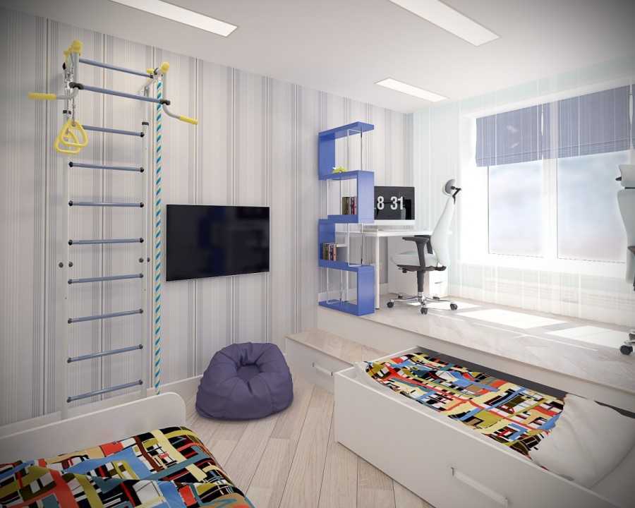 Просторная комната со светлым мальчиковым интерьеромИсточник guruotdelki.ru