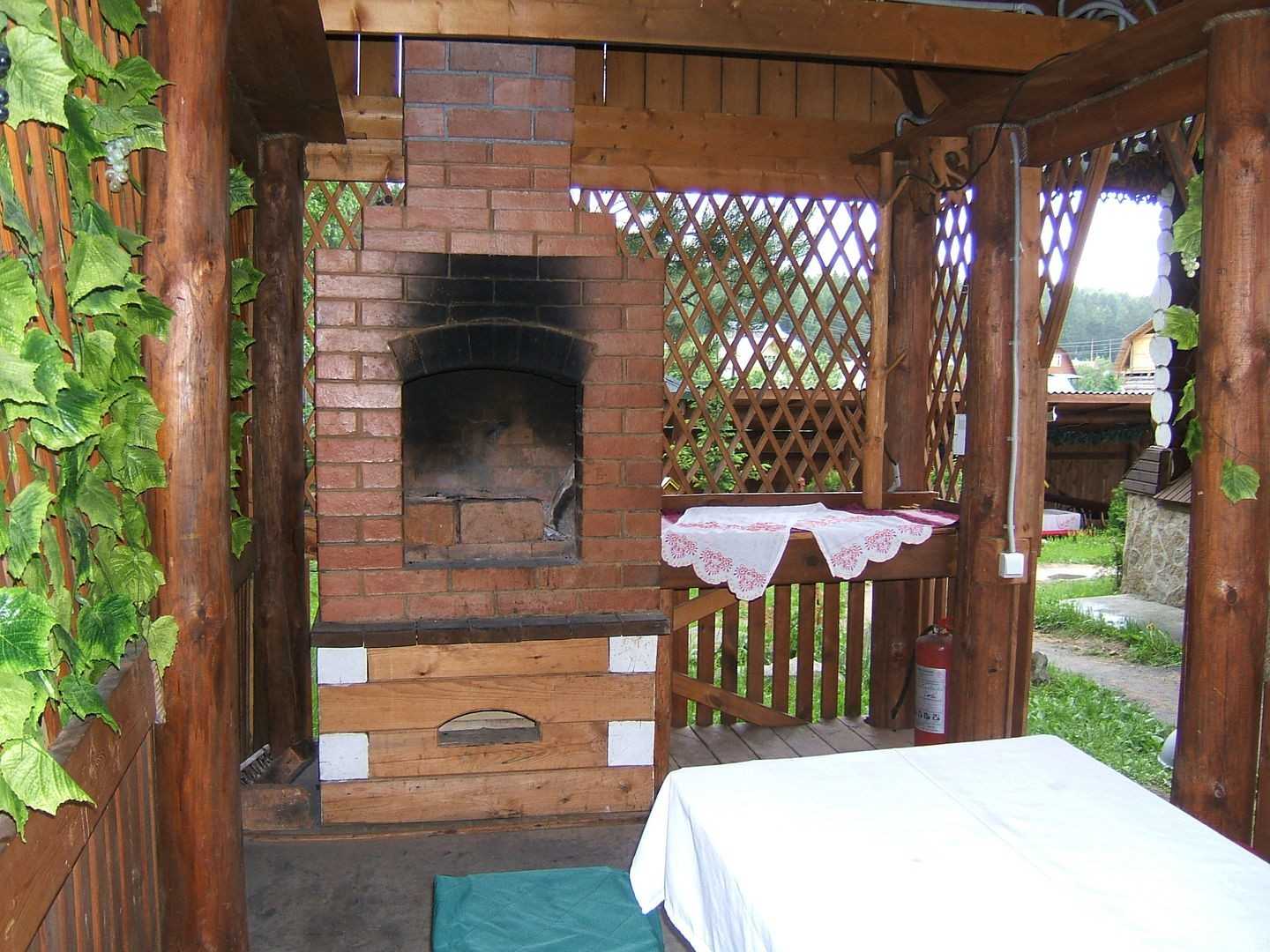 Отдельно подготавливают детали для обустройства мангала или печи (решетки, кирпич, камень для кладки, трубу дымохода). Обязательно подготавливают инструкции по изготовлению беседок из дерева для дачи своими руками.