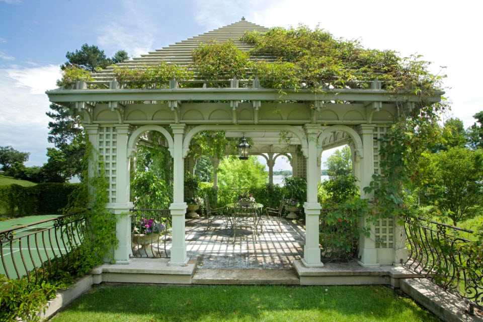 - классика. Такая беседка должна иметь правильную геометрическую форму, четыре или шесть граней. В этом стиле приветствуется симметрия линий, соответствие пропорций, гармония форм;