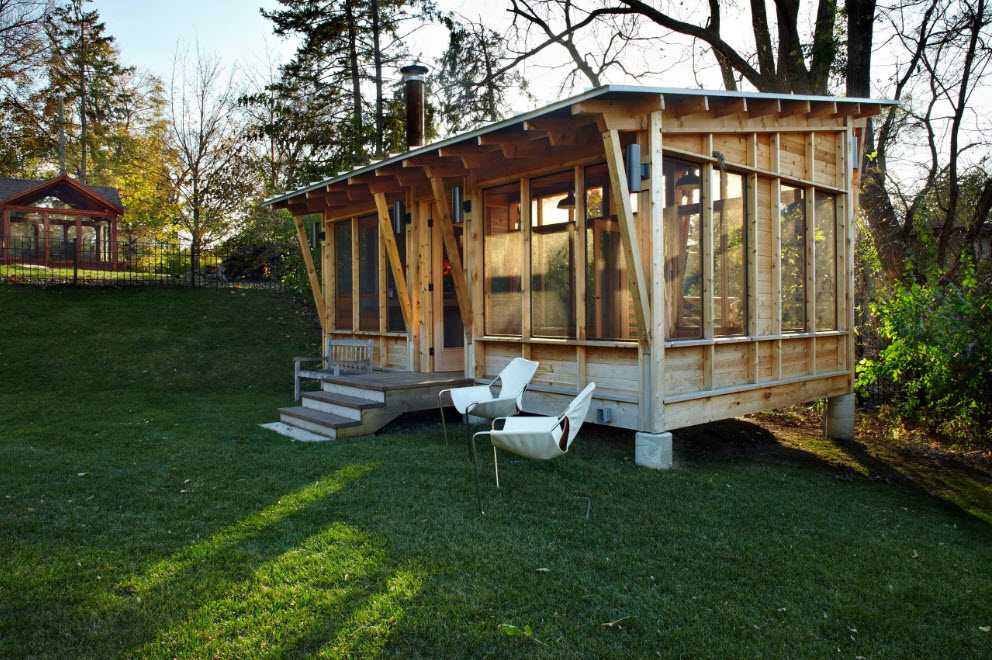 Немаловажным моментом является крыша. Вид крыши полностью зависит от формы каркаса. Самая распространенная форма – прямоугольная. Варианты для крыши: односкатная, двухскатная и четырехскатная. Самая простая и легкая — это односкатная. Она может быть полностью горизонтальной, если снега выпадает мало, и под наклоном.
