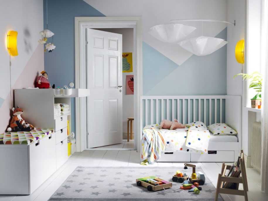 Если площадь небольшая, мебель расставляйте у стенок, не перегружайте множеством ненужных предметов. Например, если ребенку уже год, то пеленальный столик в комнате совсем ни к чему.