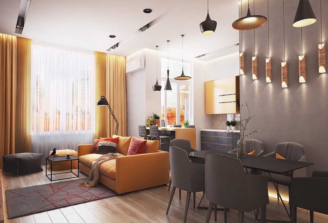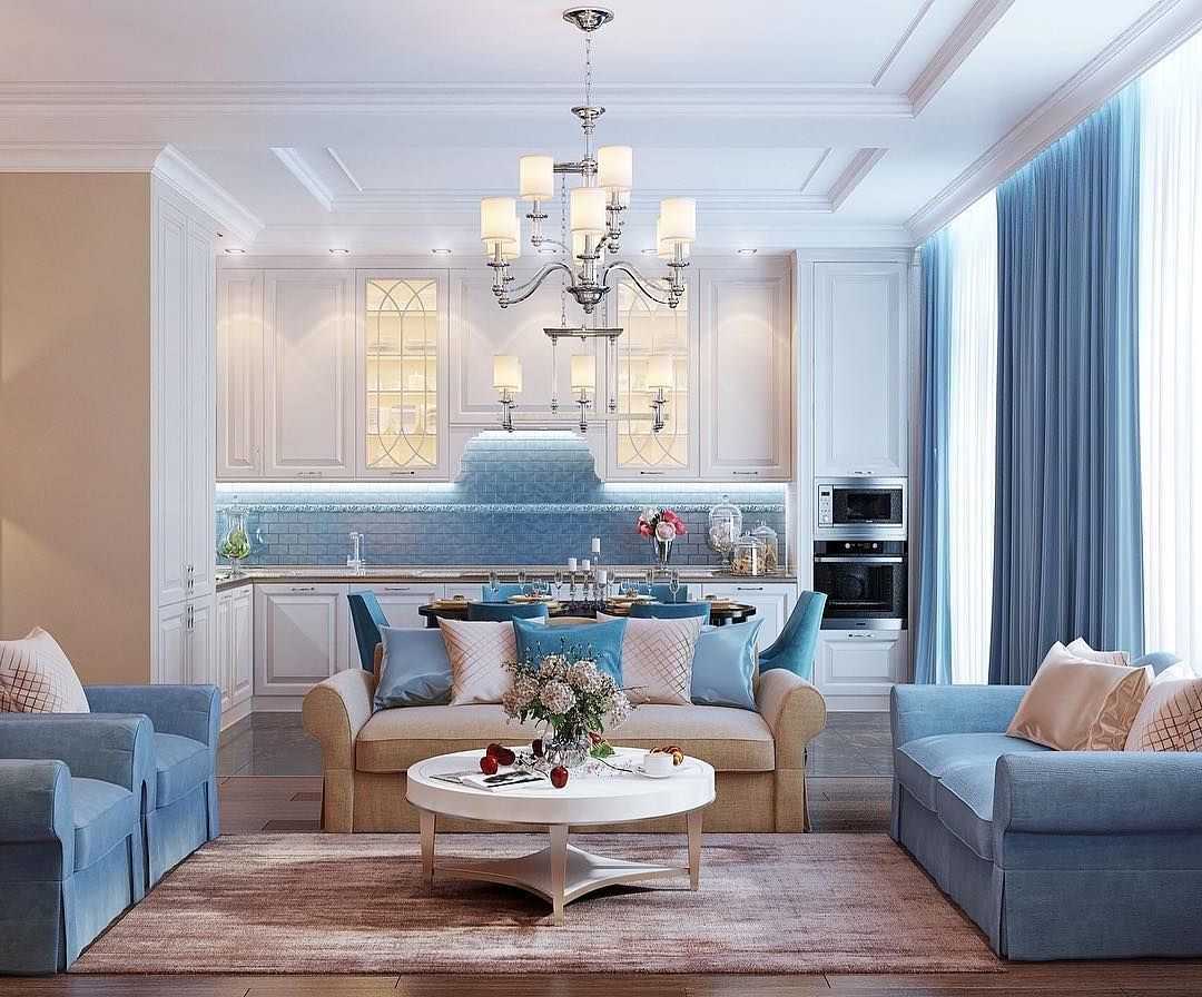 Домашний уют и гармония в гостиной совмещенной с кухней