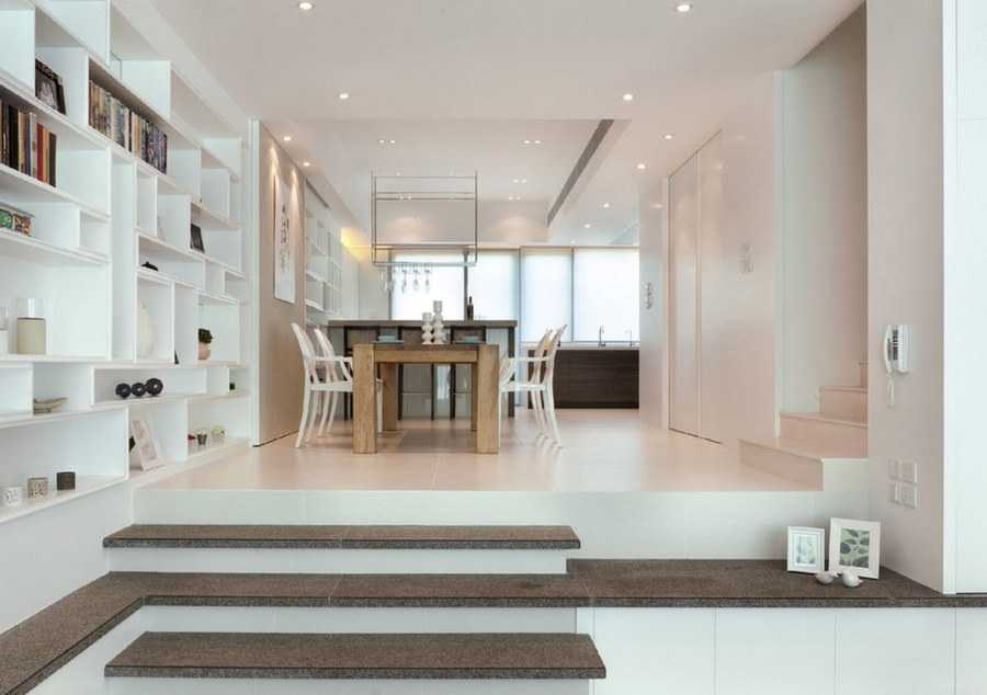 Подиум является удобным и эффективным способом разделения помещения на функциональные зоны