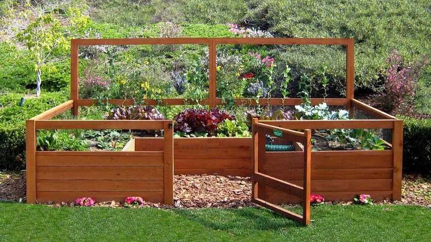 Высокие гряды с деревянным ограждением могут быть сделаны из досок, бруса и горбыля.