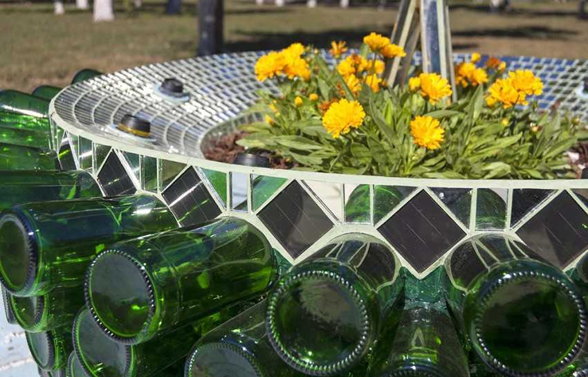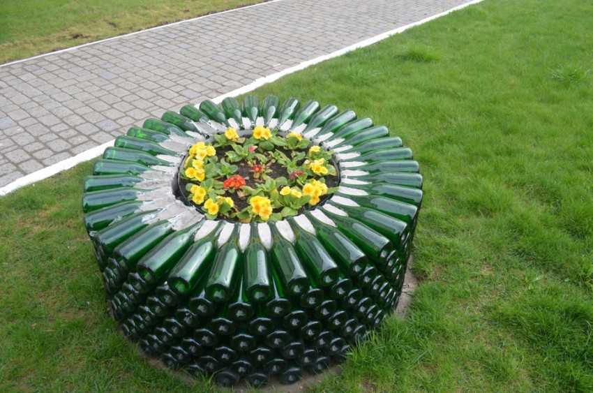 - При невозможности использования дорогих материалов применяются при сооружении цветников любой формы. Используются полуторалитровые или пятилитровые бутылки.