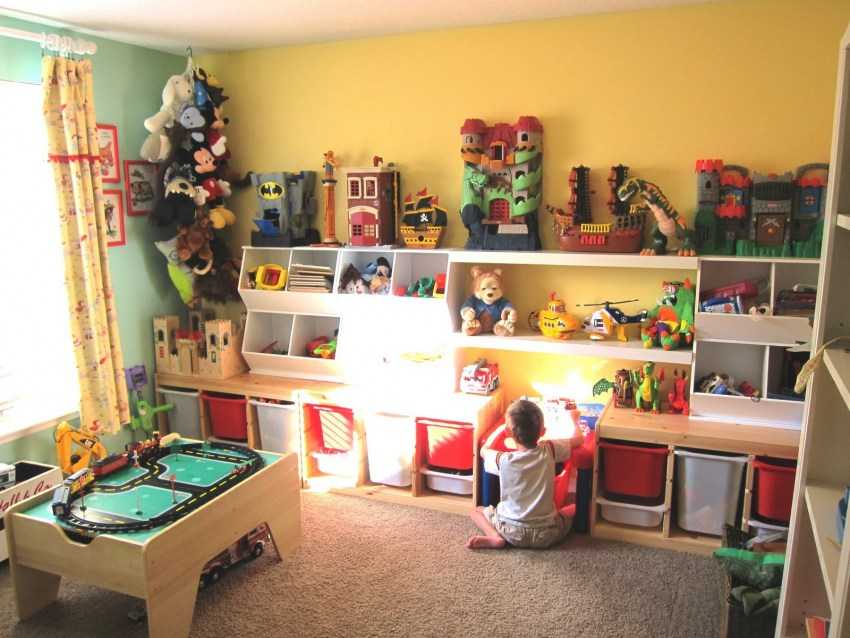 Обычно дети любят яркие и контрастные цветовые сочетания, особенно мальчишки. Поэтому можно подобрать мебель и ящики для игрушек разных оттенков, главное, чтобы они хорошо сочетались между собой и вписывались в общий стиль. Мальчик должен знать, где он может помастерить порисовать или полепить, где повозить машинки, а где отдохнуть, утомившись от своих бесконечных дел.
