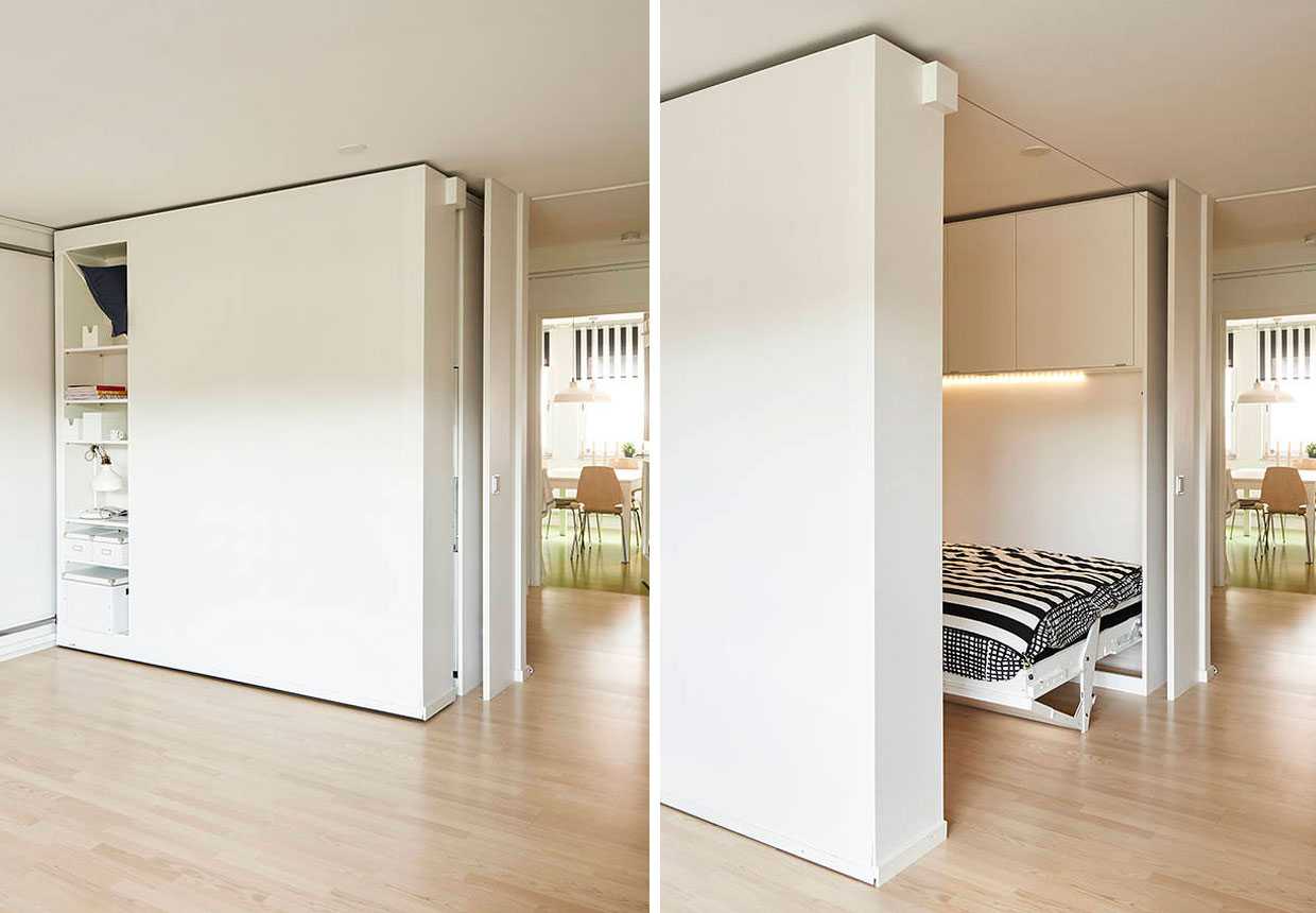 Рис. 42. Кровать складывается в шкаф, а целый передвижной блок в виде полноценного шкафа всё это закрывает |