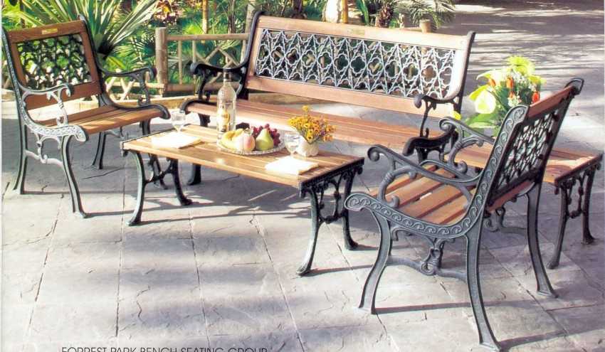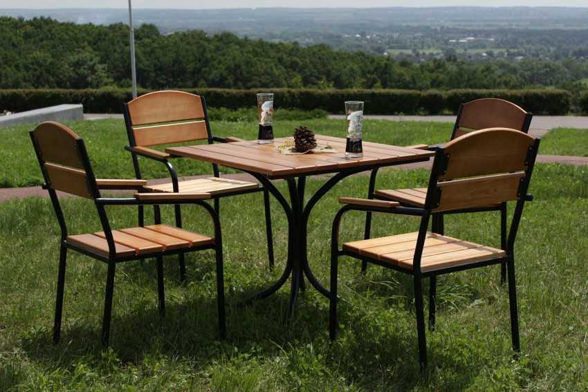 Отдельные изделия изготавливают при минимуме вложений. Но стационарные наборы, выполненные в едином дизайне, выигрывают в комфорте и эстетичности. Дачные гарнитуры в одном стиле рекомендовано делать из идентичного сырья.