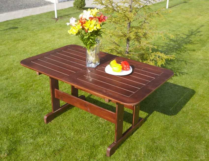 Садовую мебель из древесины обязательно нужно обработать специальными составами, защищающими от преждевременного гниения и образования плесени, так как она находится на улице, где на нее воздействует сырость и влага. Любая древесина перед началом работ должна быть проверена на сухость и если в ней присутствует влага, то ее необходимо удалить. В противном случае изготовленная садовая мебель может потерять свою красоту и развалится из-за увода доски.