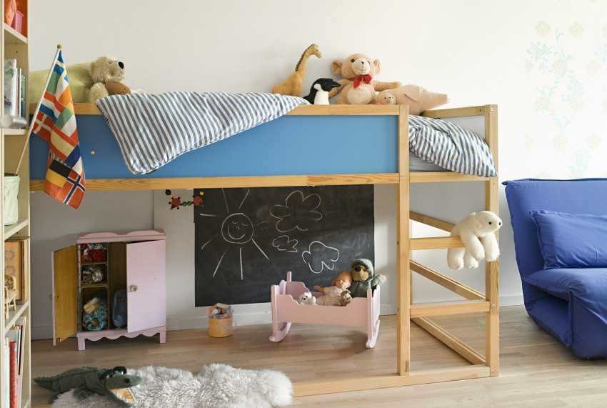 Оформление детских кроватей-малюток всегда яркое и красочное, зачастую соответствует любимым мультфильмам малышей. Если вам необходим комфорт и минимальное задействование пространства, то кровать-чердак от IKEA – то, что вы искали.