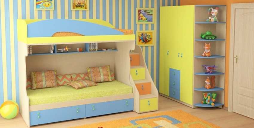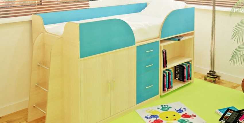 В нестандартных комнатах, чтобы совместить гостиную с детской, нужна компактная многофункциональная мебель.