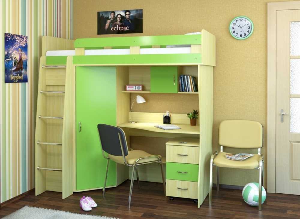 - Школьнику практично купить кровать-чердак, внизу поместить учебную зону или диван;