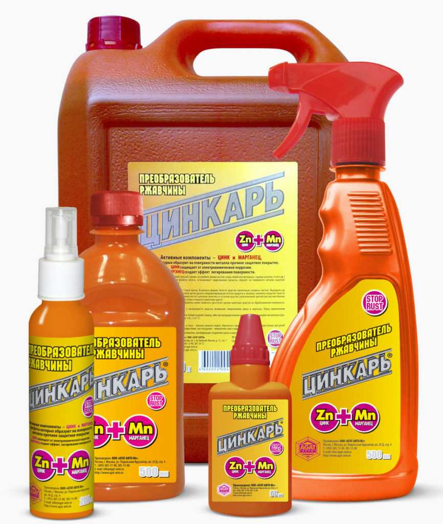 Расскажем подробно, что такое «Цинкарь» для авто. Это средство для обработки металла, выпускаемое московским предприятием «Агат-Авто», предназначено для удаления очагов коррозии на любых видах металлических поверхностей и дальнейшей их защиты. Оно содержит не только ортофосфорную кислоту, способную за короткий срок разрушить слой окиси (ржавчины), но и катализаторы, ускоряющие процесс, стабилизаторы, ингибиторы, а также соли цинка, марганца. Последние образуют на поверхности защитный слой, препятствующий дальнейшему ее разрушению. Цинк подавляет уже появившиеся очаги ржавчины, а марганец легирует, то есть укрепляет уже образовавшийся защитный слой.
