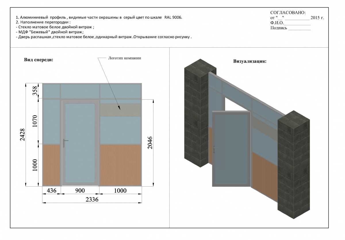 - вид перегородок (рамные, безрамные, глухие, полупрозрачные);